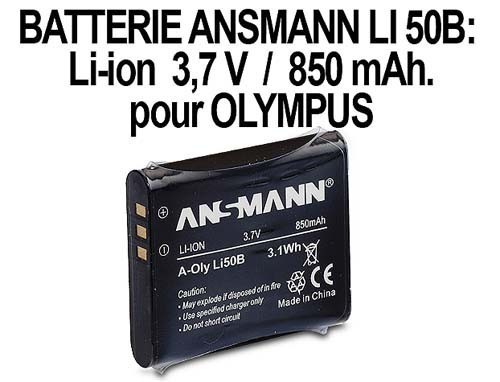 ANSMANN ACCUS POUR OLYMPUS LI50B 37V 770mAh