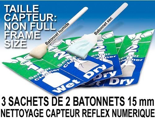 Attention, il est fortement recommandé d'effectuer une aspiration avant d'utiliser des bâtonnets afin de ne pas rayer le capteur en "trainant" de petites particules abrasives.