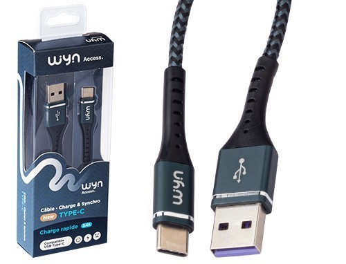 CABLE USB-C METAL TRESSE NOIR 24A (1)