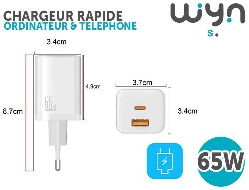 CHARGEUR RAPIDE 65W ORDINATEUR ET TELEPHONE(1)