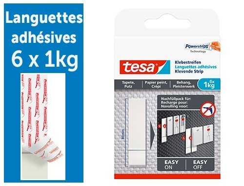 TESA BOITE 6 LANGUETTES ADHESIVES AMOVIBLES 1KG