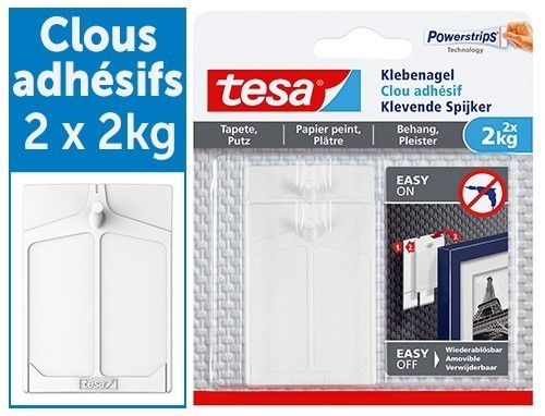 BOITE DE 2 CLOUS ADHESIFS TESA POIDS JUSQU'A 2KG